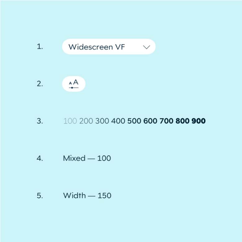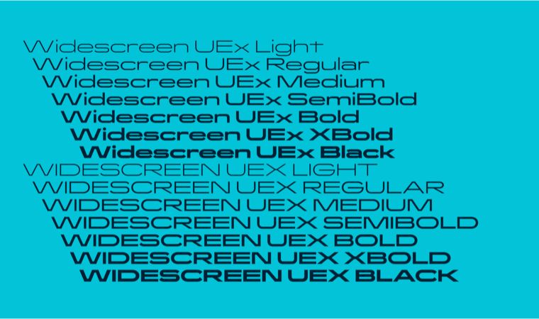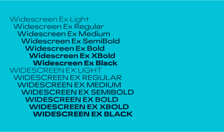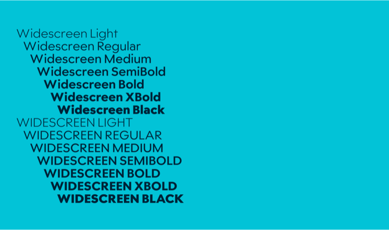 Widescreen has a variety of weights to provide a flexible typographic system.